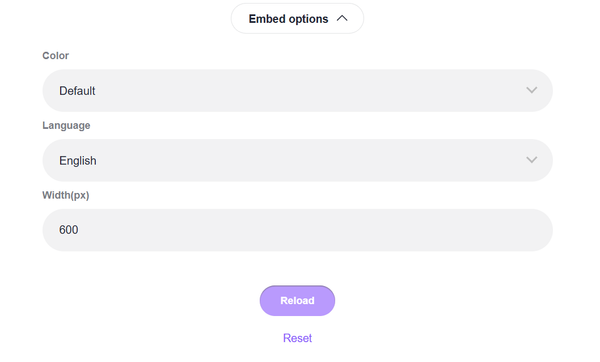 3.Click the [Embed Options] to customize the color, size etc to stylize to your liking.