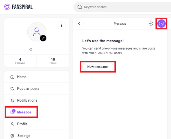 You can also search for messages with a specific user by entering keywords in the search bar on the message page.