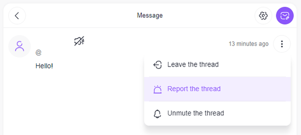 From the three-dot icon, tap “Report Thread” to report the thread.