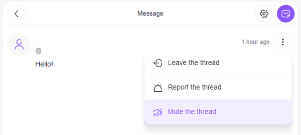 From the three-dot icon, tap “Mute Thread” to mute the thread.