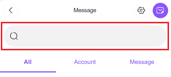 To search for messages, enter keywords in the search bar on the message page. The content of the message and user name will appear in the search results.