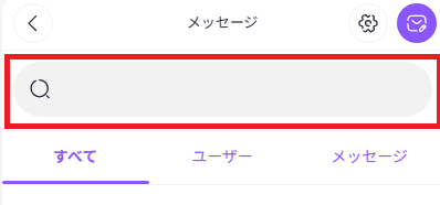 メッセージページ内で検索窓にキーワードを入力して、メッセージの内容やメッセージをやりとりしているユーザー名の検索ができます。